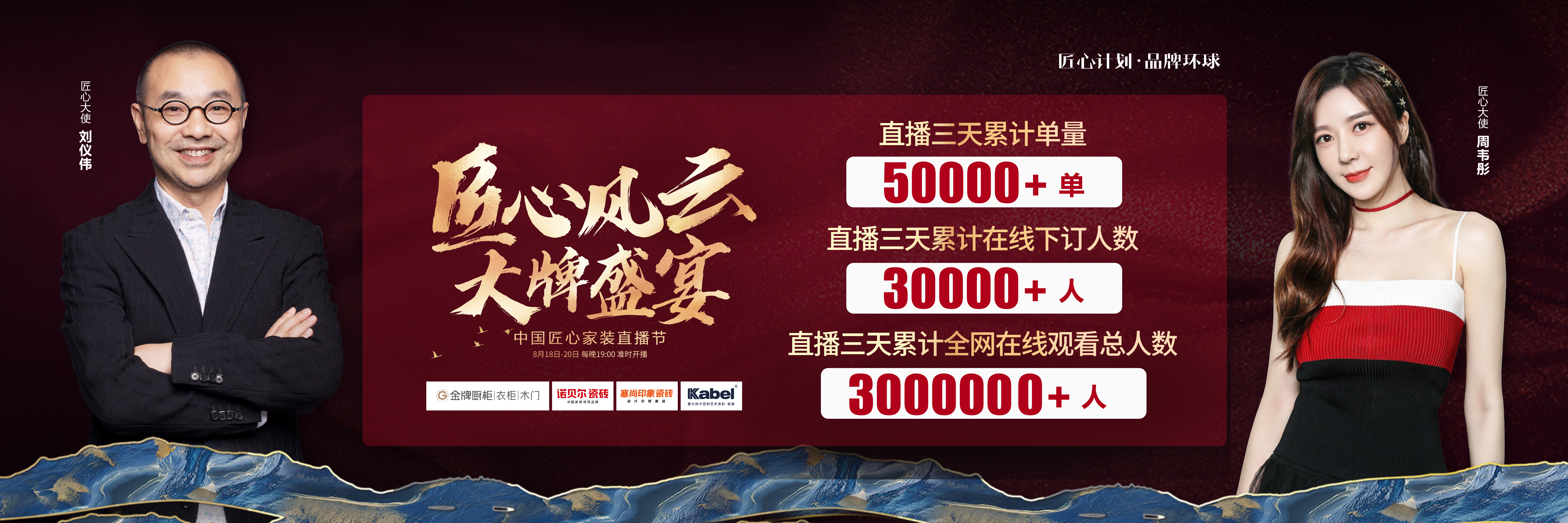 由金年会厨柜、诺贝尔瓷砖、塞尚印象瓷砖、卡百利艺术涂料联合缔造,创赢科技系统支持全案营销执行的“匠心风云 大牌盛宴”中国匠心家装直播节于8月20日圆满落...